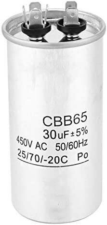 Condensateur CBB65 de 30uF pour climatisation, idéal pour appareils nécessitant 450V AC. Haute fiabilité et durabilité dans des environnements exigeants, parfait pour moteurs et compresseurs.