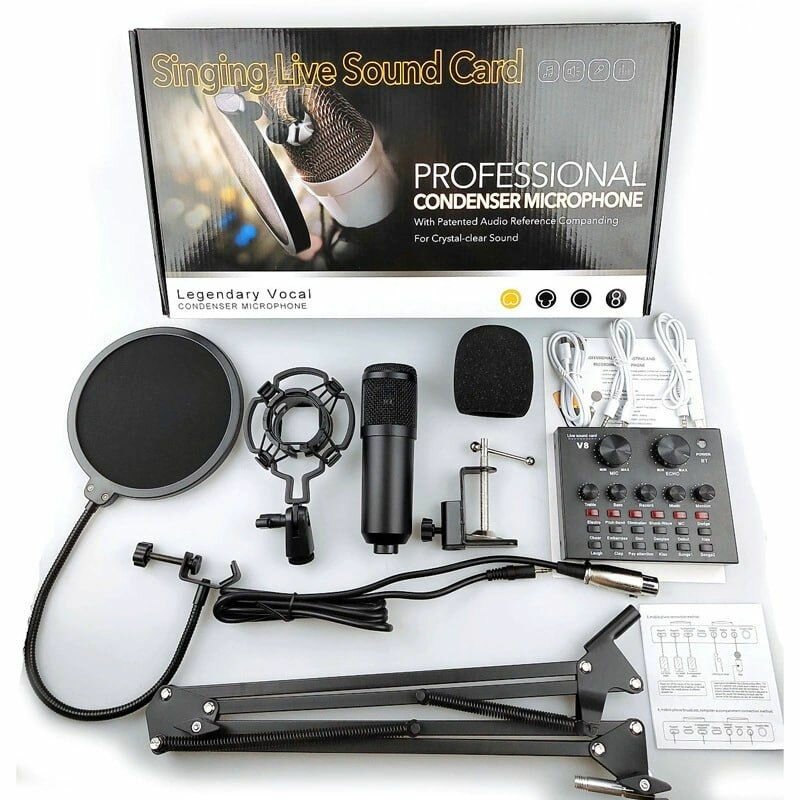 Kit micro studio à condensateur avec carte son V8 pour vos podcast, web radio, voix off, karaoké etc.