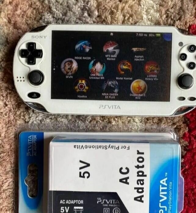 Console de jeu portable PSVITA avec chargeur AC 5V. Design élégant et compact, parfait pour jouer à vos jeux préférés en déplacement. Différentes couleurs disponibles.