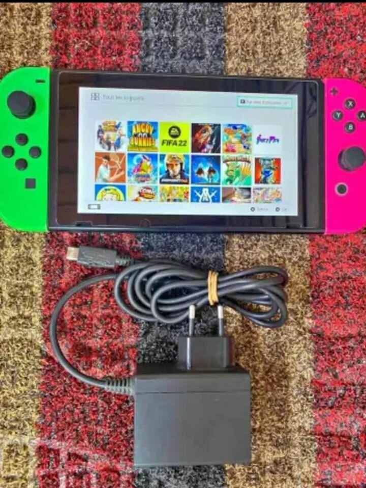 Découvrez le Nintendo Switch avec Joy-Con néon. Idéal pour le gaming portable et à domicile. Parfait pour les soirées entre amis ou en solo. Comprend un câble de charge.