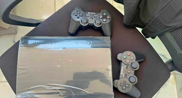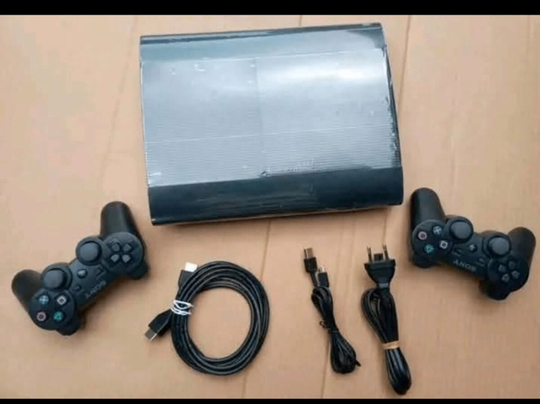 Console de jeu Sony Playstation 3 avec manettes. Idéal pour les amateurs de jeux vidéo. Livré avec accessoires.