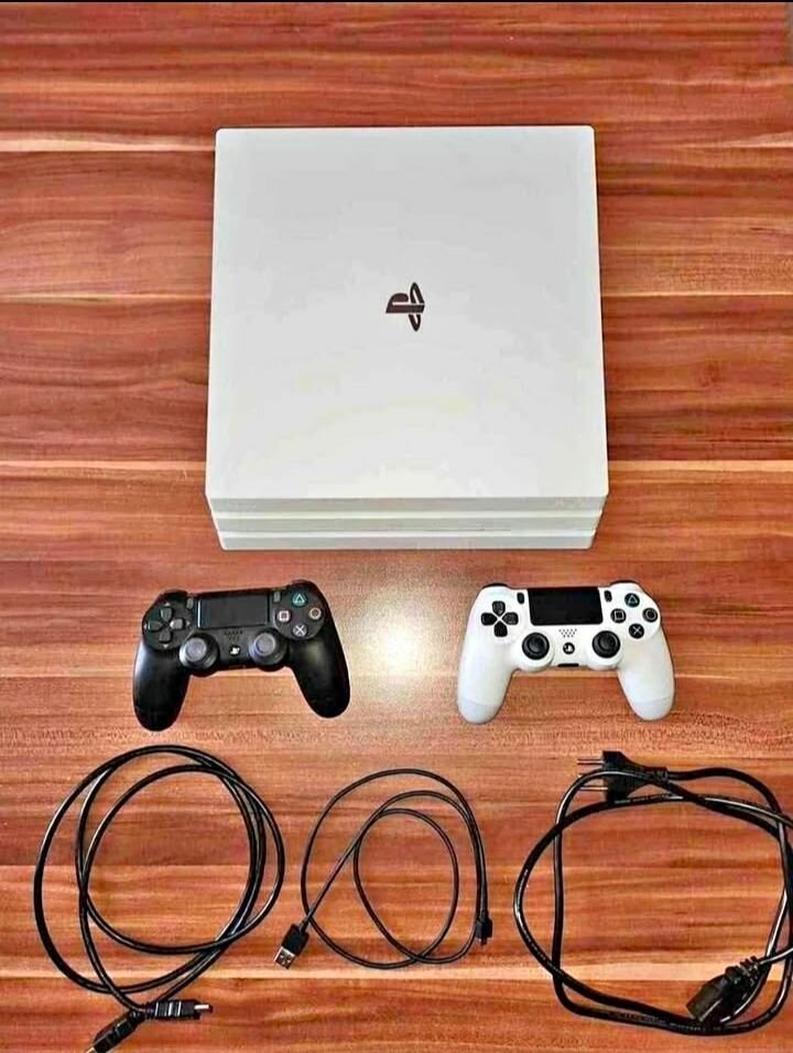 Console de jeu Sony PlayStation 4 Slim avec 2 manettes et accessoires. Parfaite pour les amateurs de jeux vidéo.