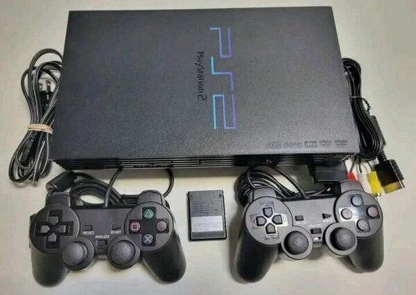 Console PS2 avec 2 manettes et câbles
