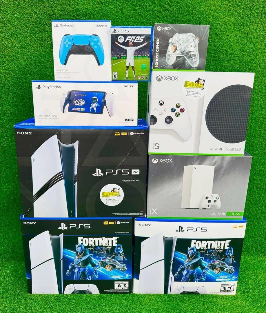 Découvrez la console PlayStation 5 de Sony, équipée d'une manette sans fil et de jeux vidéo populaires comme Fortnite. Profitez de performances graphiques exceptionnelles et d'une expérience de jeu immersive. La console est fournie dans son emballage d'origine avec tous les accessoires nécessaires.