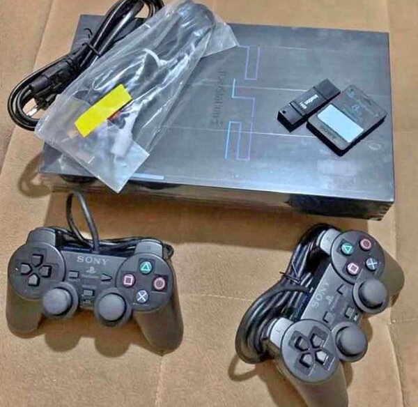 Console de jeu Sony PlayStation 4 Slim avec 2 manettes DualShock 4. Câbles inclus. Idéal pour les amateurs de jeux vidéo.