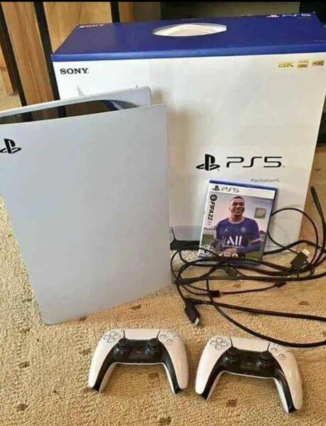Console Sony PS5 avec manettes et FIFA 23