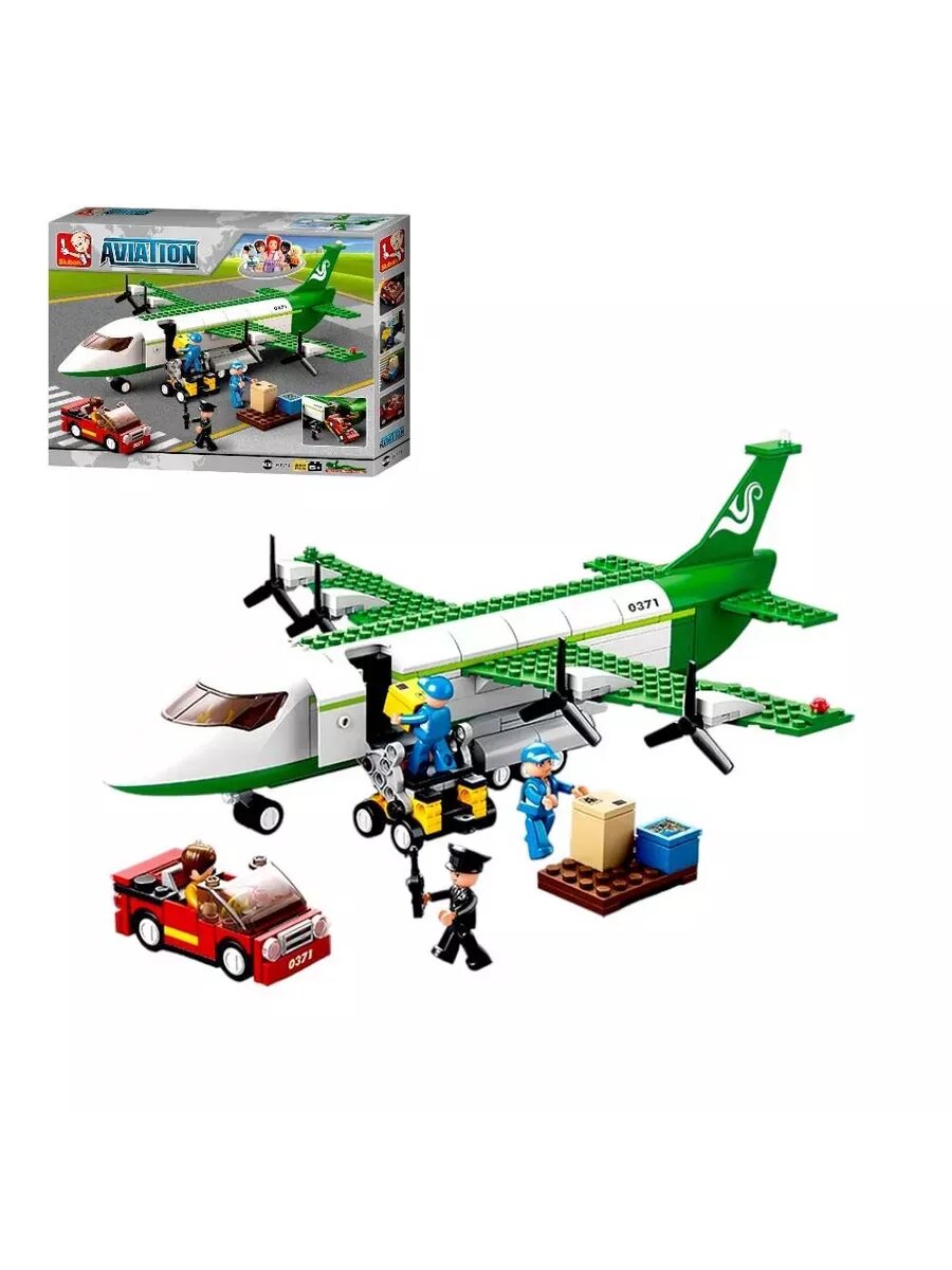 1️Конструктор виация: Самолет с машинками техобслуживания и фигурками