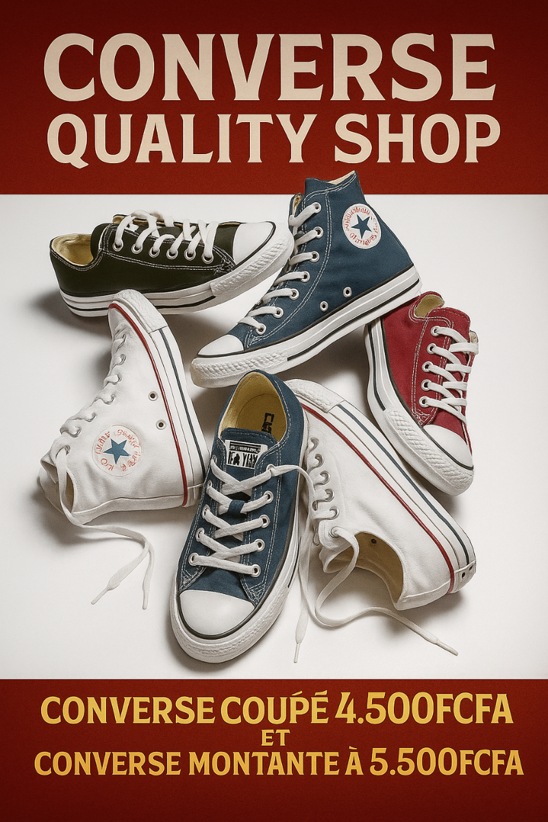 Découvrez les classiques Converse, parfaites pour un style décontracté et tendance. Disponibles en plusieurs couleurs, elles offrent un confort exceptionnel grâce à leur conception en toile durable et une semelle adhérente. Idéales pour compléter votre look urbain.