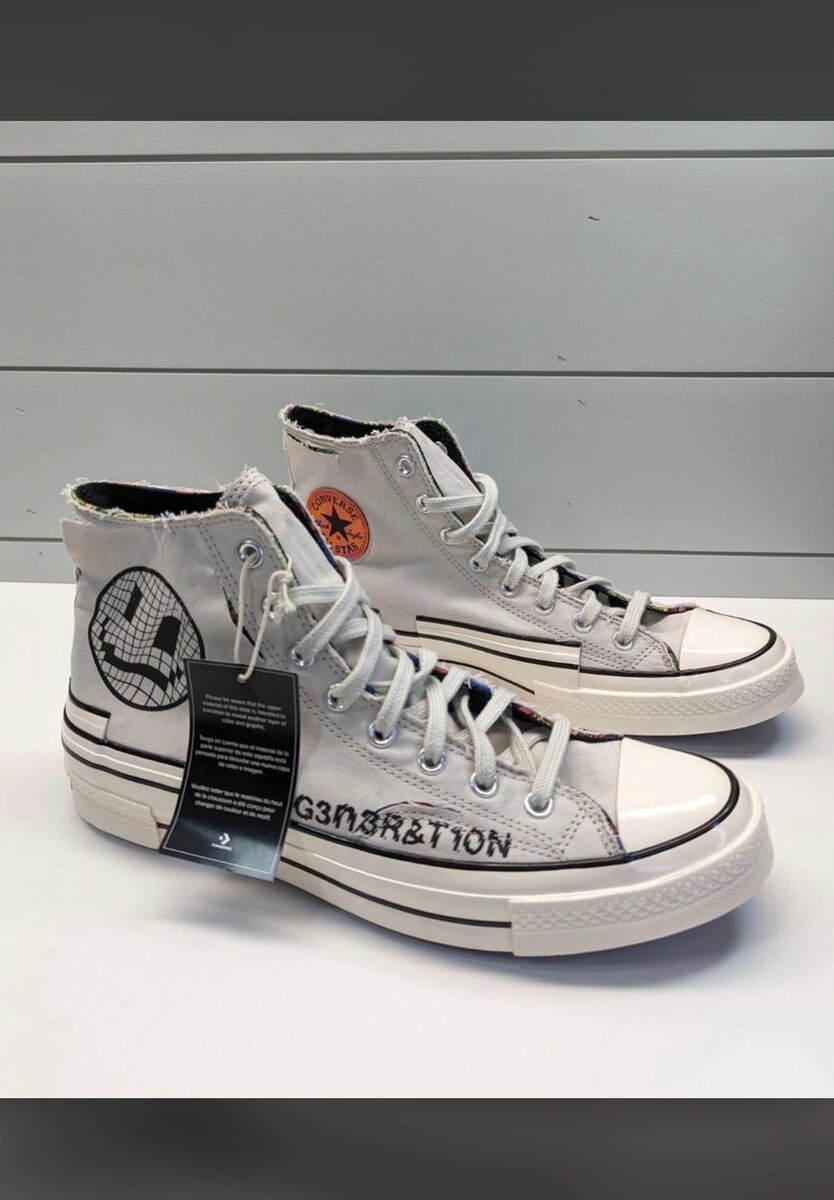 Découvrez les baskets Converse Chuck Taylor All Star Generation, parfaits pour un style urbain décontracté. Fabriqués en cuir blanc avec des semelles en caoutchouc robustes, ces chaussures sont idéales pour la vie quotidienne. Le design distinctif intègre des logos et des patchs uniques, ajoutant une touche personnelle.