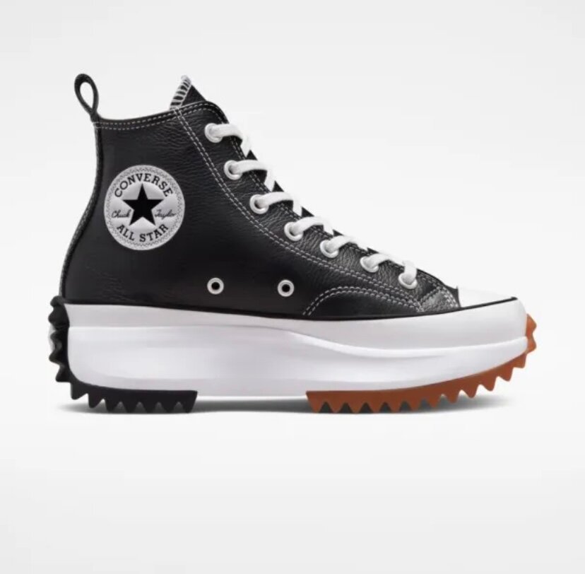 chaussures montantes Converse, en cuir noir, ces sneakers offrent confort et durabilité. Portez-les avec des jeans ou des tenues décontractées pour un style qui se démarque.