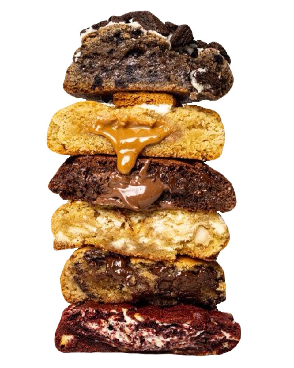Les différents saveurs de nos Cookies Cookie spéculos Cookie Nutela Cookie 3 chocolat Cookie oreo Cookie M&Ms Cookie kinder Cookie machmalo