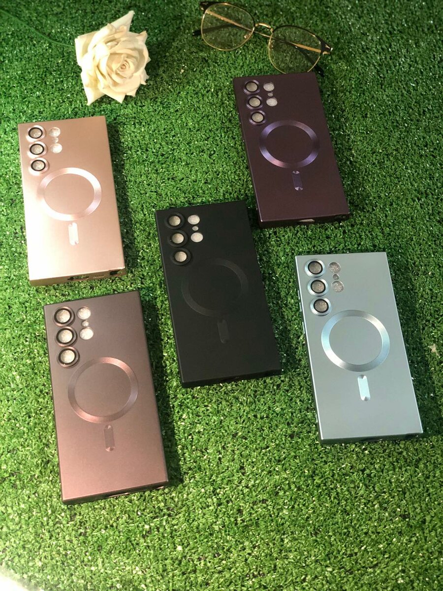 Coque de luxe en silicone souple MagSafe avec protection arrière pour objectif camera. Uniquement pour Samsung du S20 au S23Ultra et du Note 10 au Note 20Ultra