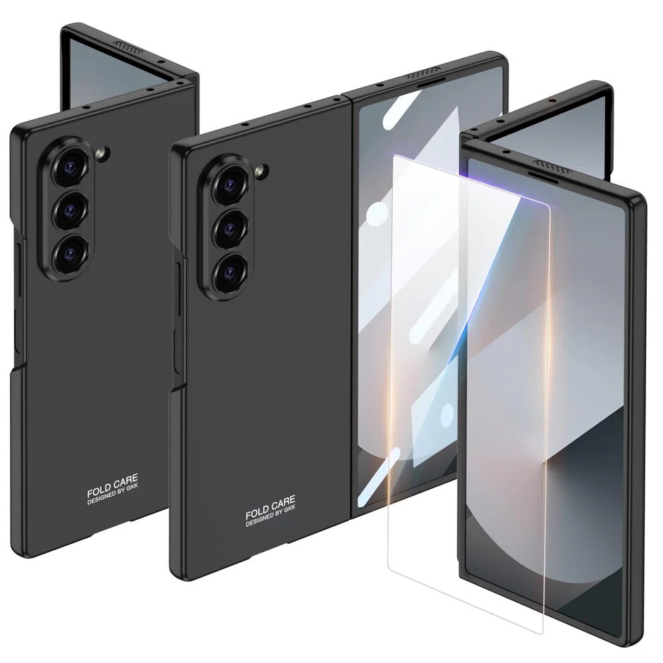 Coque pour Samsung Galaxy Z Fold 6, coque rigide tout compris avec film en verre trempé, coque de téléphone anti-chute pour Samsung Galaxy Z Fold 6. Noir