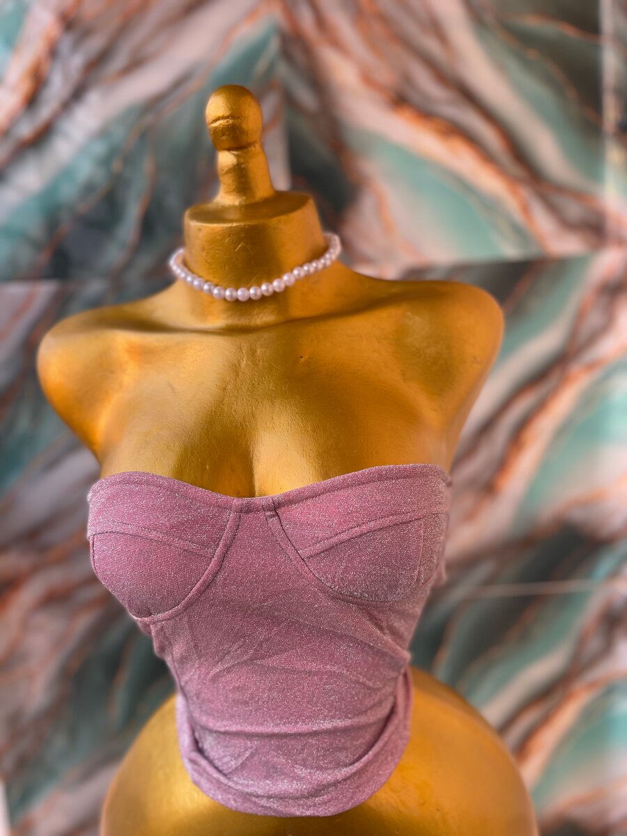 Découvrez ce magnifique corset bustier en velours rose poussière. Parfait pour les occasions spéciales, il ajoutera une touche d'élégance à votre tenue.