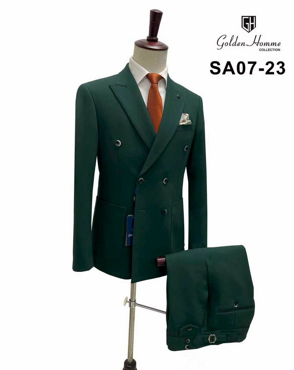 Découvrez ce costume vert élégant pour homme de Golden Homme Collection. Parfait pour toutes vos occasions formelles, avec une coupe moderne et un tissu de haute qualité. Association parfaite avec une cravate assortie. Idéal pour mariages, réunions ou dîners d'affaires. Faites une impression mémorable!