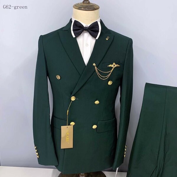 Adoptez un look chic et professionnel avec ce costume bleu marine à double boutonnage. Idéal pour les réunions d'affaires ou les événements spéciaux, il offre une coupe ajustée et un tissu de haute qualité. Les boutons dorés ajoutent une touche d'élégance supplémentaire. Associez-le avec des accessoires de choix pour un style raffiné et moderne.