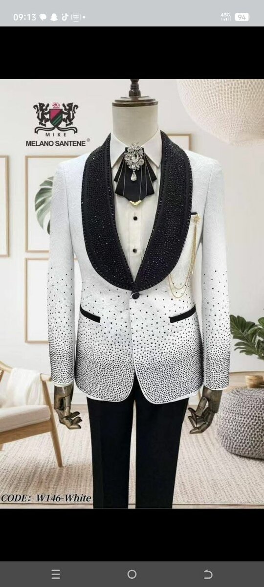 Découvrez un costume élégant et raffiné pour hommes, idéal pour des occasions spéciales ou des soirées. Conçu avec un design unique en noir et blanc, il offre une allure sophistiquée. Parfait pour ceux qui veulent se démarquer avec style.