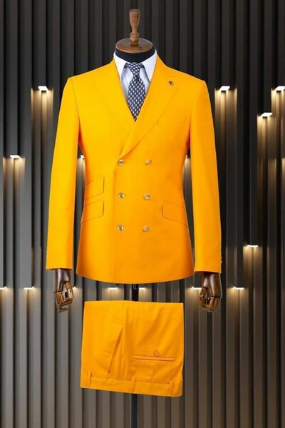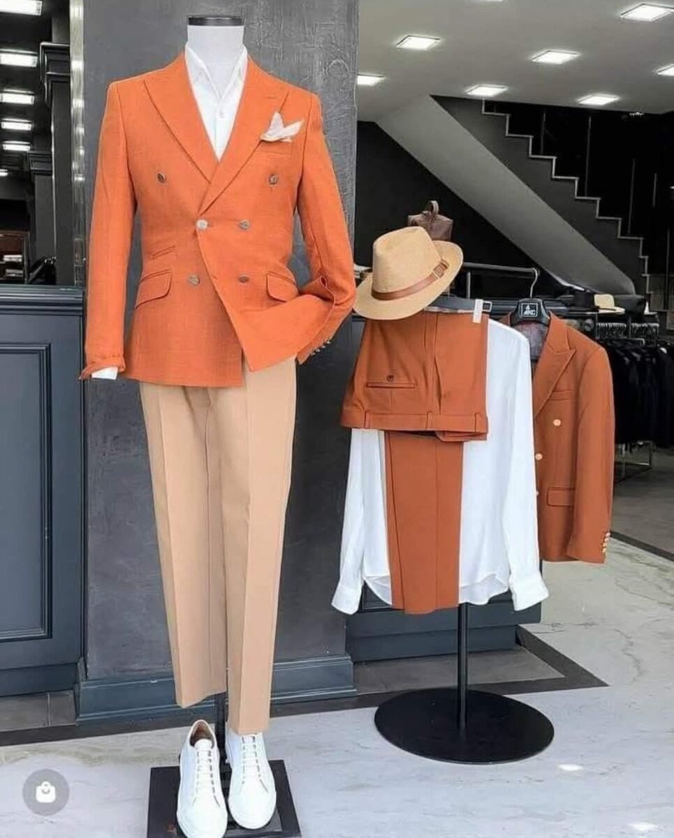 Ce costume élégant pour homme se démarque par sa couleur orange vibrante et ses détails raffinés. Parfait pour des occasions spéciales ou des événements professionnels, il est conçu pour offrir confort et style. Associez-le avec un chapeau assorti pour un look complet et sophistiqué.