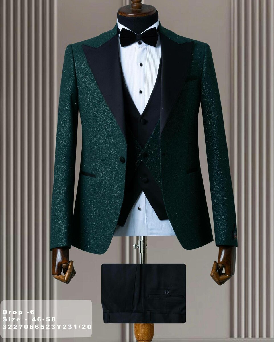 Costume vert bouteille 3 pièces. Idéal pour une cérémonie inoubliable dans le temps et dans les esprits. Tissu de meilleure qualités