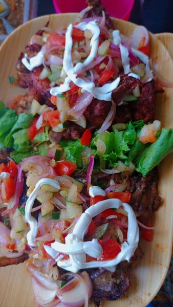 Votre côte de porc bien assaisonné et délicieuse avec in accompagnement (attieke, frites ou alloco)