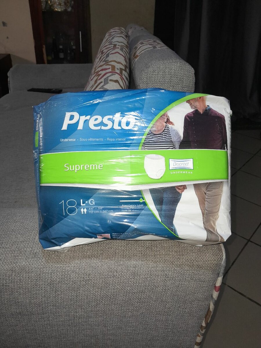 Couches adultes Presto Supreme pour une protection optimale. Taille Large, pack de 18 unités. Conçu pour les personnes ayant des besoins d'incontinence.