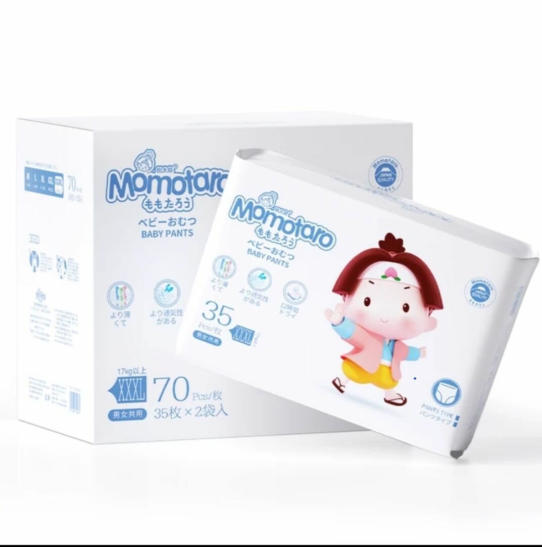 Découvrez les couches Momotaro pour bébé, conçues pour offrir confort et protection. Taille 3XL, paquet de 35 Couches ultra-absorbantes pour une peau sèche et saine.
