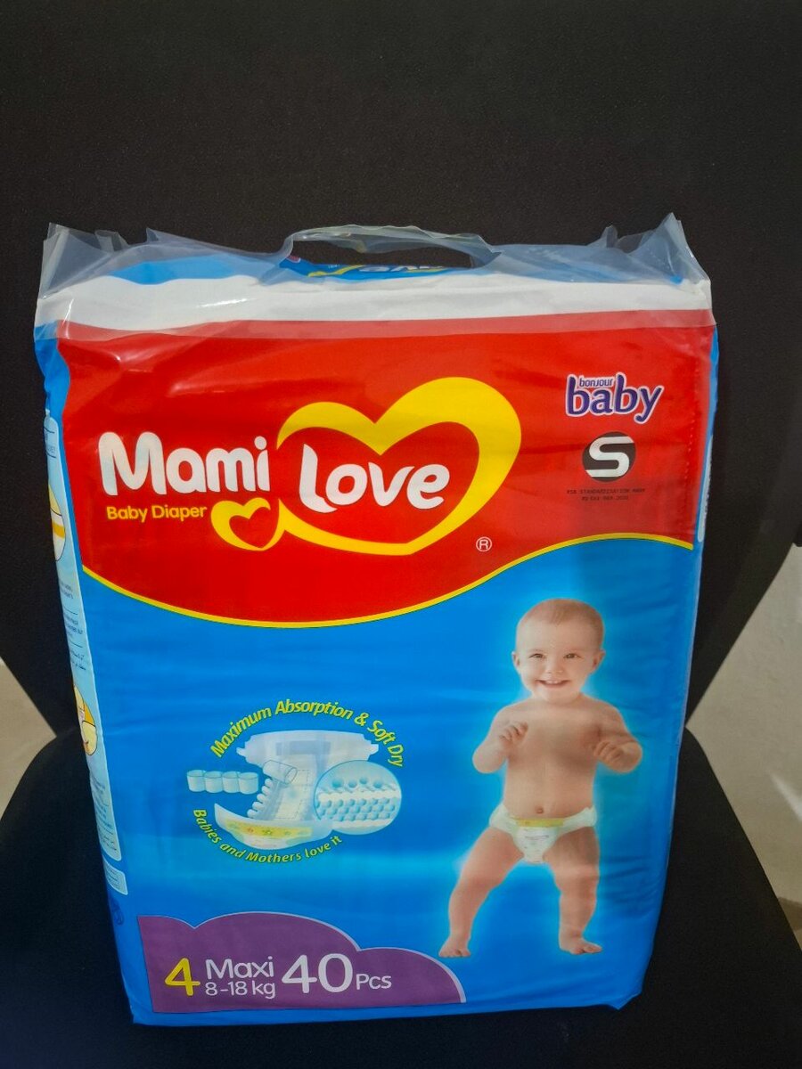 Couches Mami Love taille 5, maxi absorption pour bébés de 8 à 18 kg. Pack de 40 pièces, confort et protection assurés.