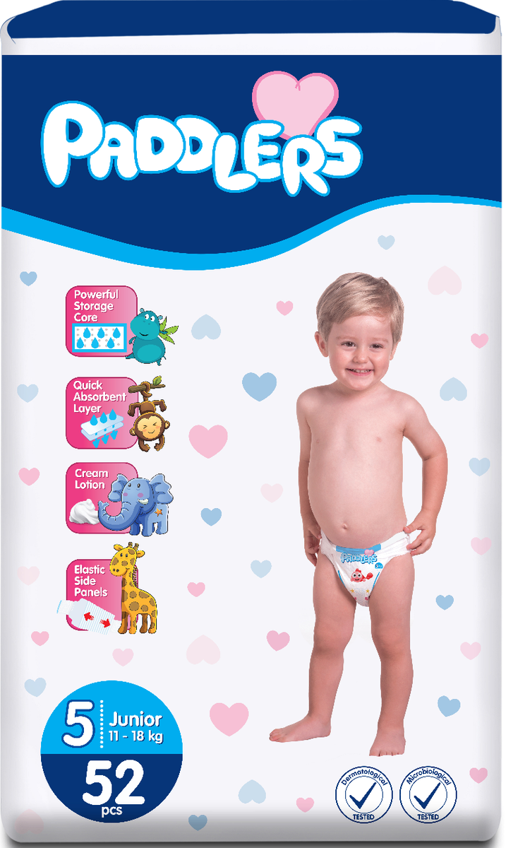 Couches pour enfants Paddlers Taille 5 (11-18kg), 52 pièces, confort et protection pour vos petits. Absorption maximale et peau douce.