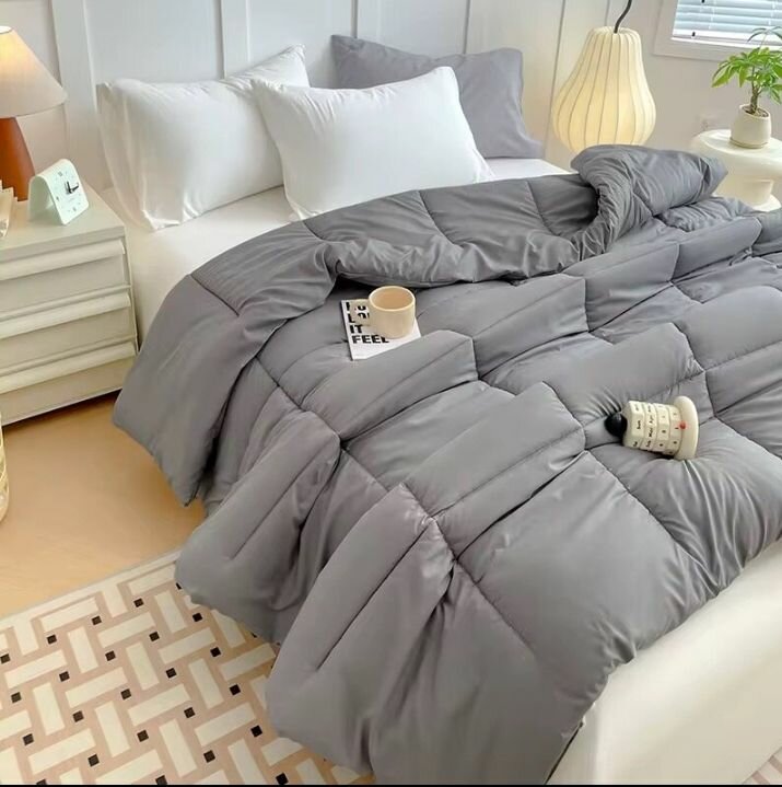 Couette grise de haute qualité pour une literie élégante et confortable. Douce et chaude, idéale pour les chambres modernes. Facile à entretenir et durable.