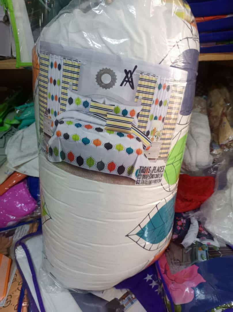 Une couette de trois places + deux taies d'oreillers