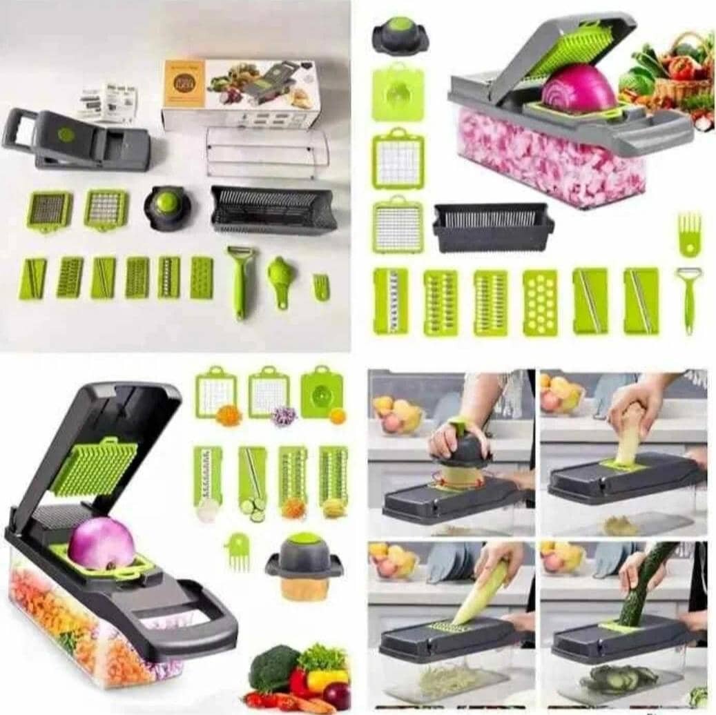 Découvrez le coupe-légumes multifonction 12 pièces. Idéal pour trancher, râper et julienner vos légumes avec facilité. Parfait pour gagner du temps en cuisine. Compact et pratique, cet outil est indispensable pour chaque cuisine moderne. Achetez-le maintenant et transformez vos préparations culinaires!