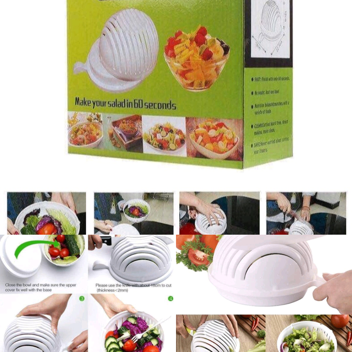 Préparez votre salade en 60 secondes avec cet ustensile innovant. Idéal pour des salades fraîches et saines rapidement à la maison. Lames sécurisées et design pratique pour trancher efficacement.