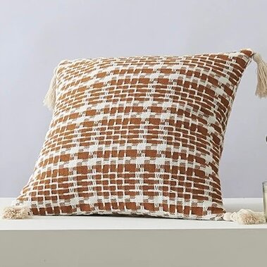 Ajoutez une touche d'élégance à votre intérieur avec ce coussin tissé à motif vichy. Parfait pour le salon ou la chambre, il apporte confort et style grâce à ses franges décoratives.