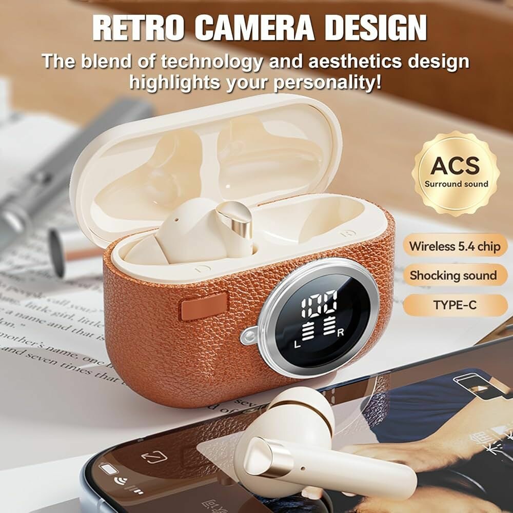 Profitez d'une expérience musicale immersive avec ces écouteurs Bluetooth au design rétro unique. Dotés d'une autonomie impressionnante de 24 heures et d'un affichage numérique pratique, ils sont parfaits pour les mélomanes. Compatibles IOS et Android, ils vous accompagneront partout avec style et confort.