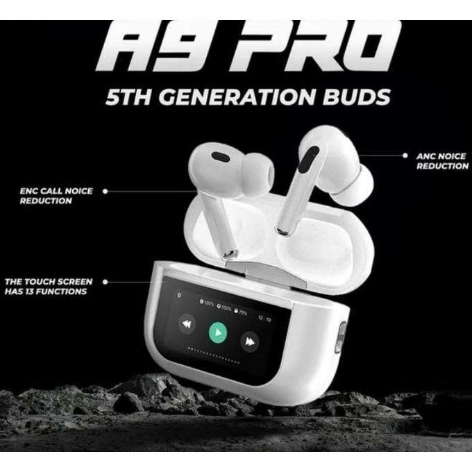 Découvrez les écouteurs sans fil A9 Pro avec réduction active du bruit (ANC). Profitez d'un son clair et immersif grâce à ses nombreuses fonctions innovantes. Écran tactile intégré avec 13 options comme contrôle musical, gestion des appels, et plus encore ! Idéals pour le quotidien, le sport et les voyages.