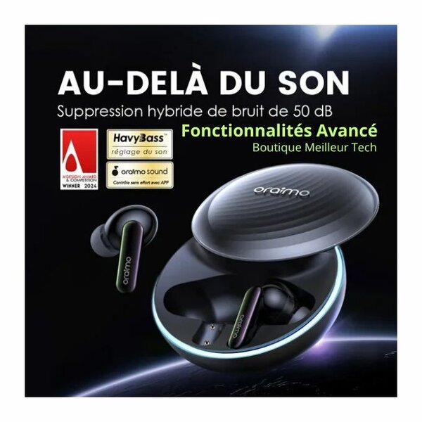 Découvrez un son immersif avec les écouteurs sans fil Oraimo ANC. Dotés de la technologie de réduction active du bruit, ces écouteurs sont parfaits pour profiter de votre musique préférée sans distractions. Leur design ergonomique et leur autonomie prolongée en font le choix idéal pour une utilisation quotidienne. Parfaits pour les déplacements, le sport et le travail. Faites l'expérience d'un son hors du commun!