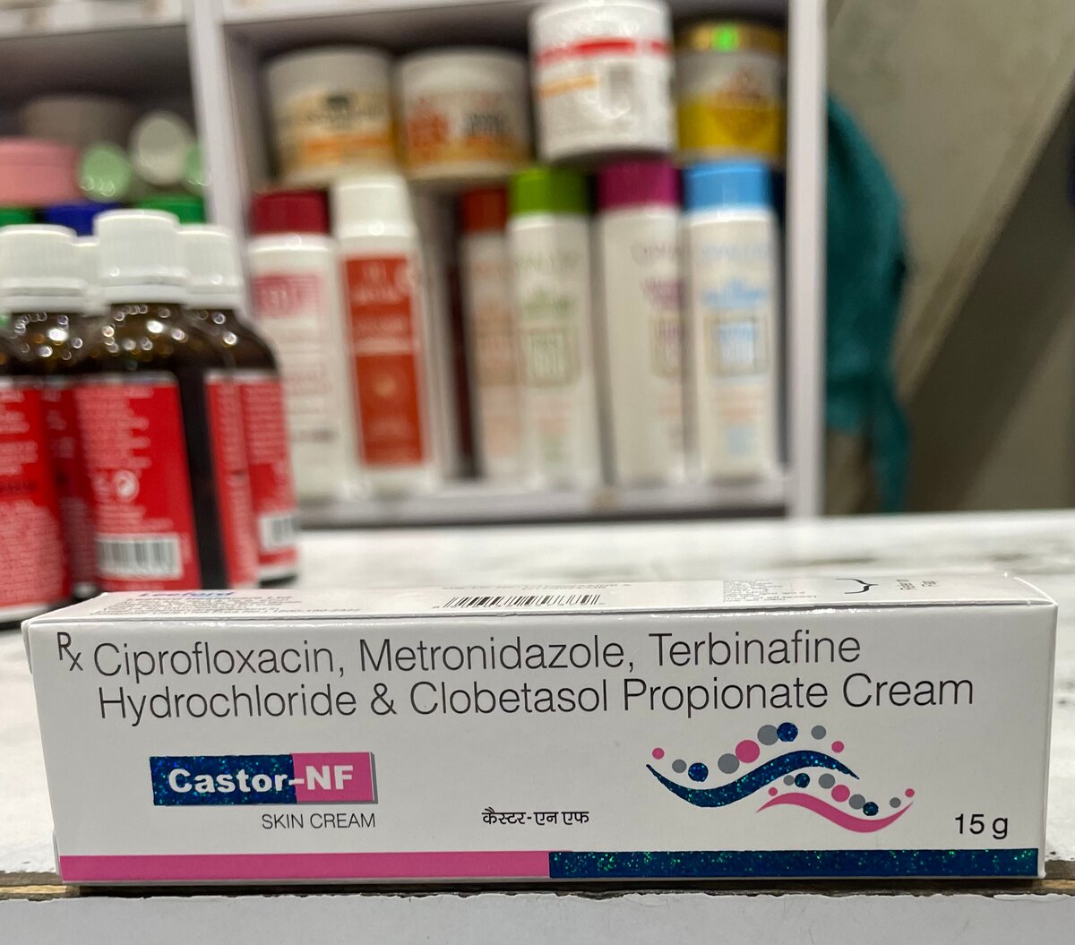 La Crème Castor-NF associe Ciprofloxacin, Metronidazole, Terbinafine et Clobetasol pour un traitement cutané efficace. Idéale contre les infections bactériennes et fongiques de la peau. Soulage rapidement les inflammations et démangeaisons. Facile à appliquer. Usage prescrit par des professionnels de santé. Format : 20x15g ou 15g.