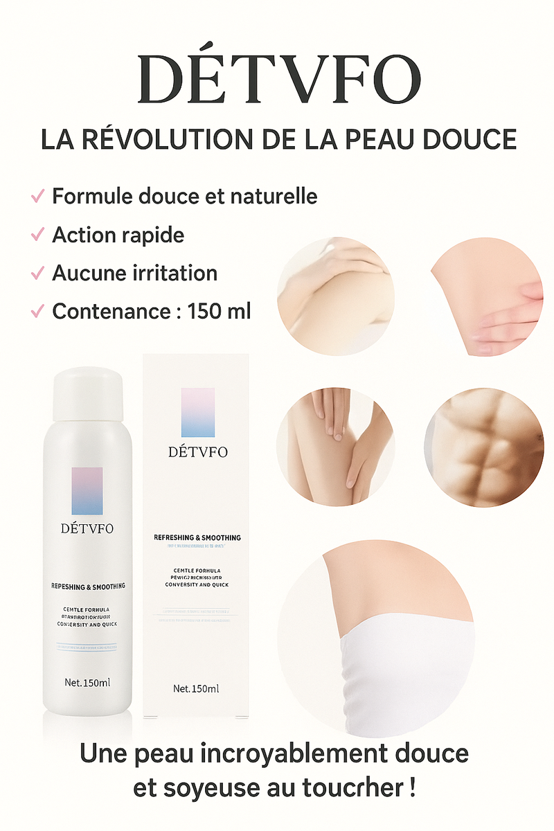 Découvrez la crème épilatoire DÉTVFO pour une peau incroyablement douce et soyeuse. Sa formule naturelle assure une épilation rapide sans irritation. Parfait pour toutes les zones du corps, ce produit est un choix idéal pour ceux qui recherchent efficacité et douceur. Contenance de 150 ml pour une utilisation pratique.
