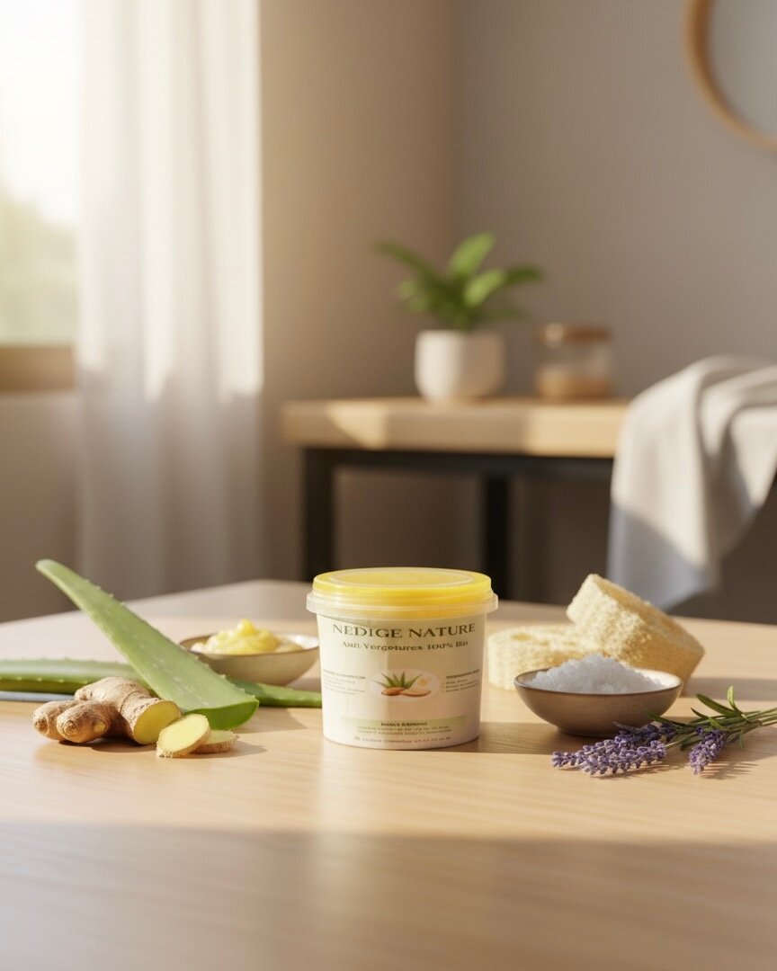 Revitalisez vous avec notre crème réparatrice anti vergeture au gingembre et aloe vera. Conçue pour adoucir et nourrir, cette formule naturelle est parfaite. Idéale pour une utilisation quotidienne, elle pénètre rapidement sans laisser de résidu. Offrez à votre peau le soin qu'elle merite.