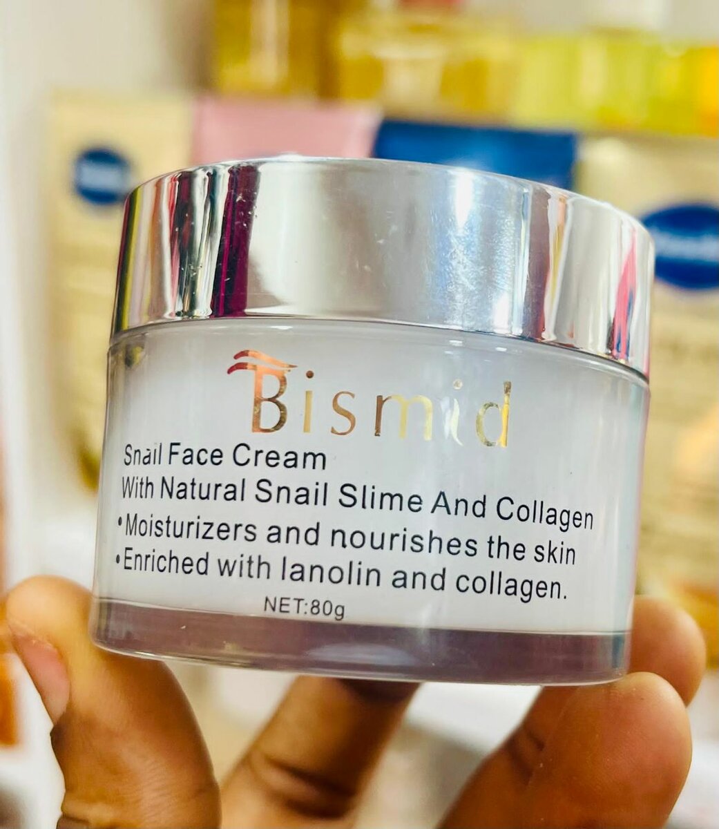 Crème visage enrichie en bave d'escargot et collagène. Hydrate intensément et nourrit la peau pour un teint éclatant et rajeuni. Idéale pour tous types de peau.