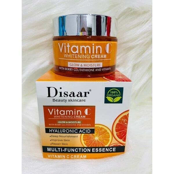 Crème à la vitamine C de Disaar, enrichie en acide hyaluronique pour une peau éclatante et hydratée. Nourrit et répare la peau en profondeur.