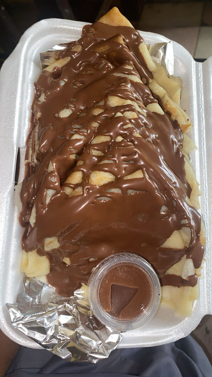 Savourez une délicieuse crêpe garnie de chocolat fondu, idéale pour les amateurs de douceurs. Parfaite pour une pause gourmande ou un dessert réconfortant. Fait avec des ingrédients de qualité pour un goût inoubliable.