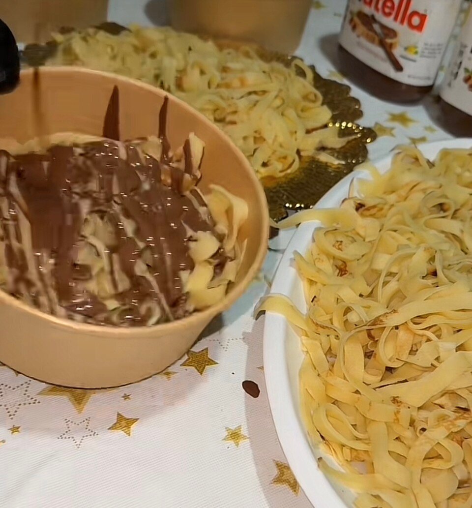 Découvrez nos tagliatelles sucrées garnies de Nutella, parfaites pour un dessert innovant. La combinaison unique des pâtes douces et de la pâte à tartiner chocolatée ravira vos papilles. À déguster lors d'un goûter avec des amis ou en famille pour un moment convivial et gourmand.