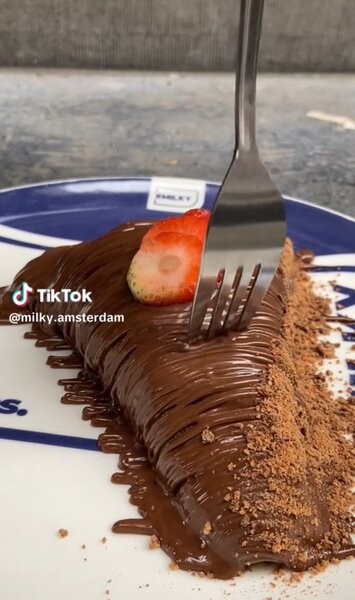 Délicieuse crêpe garnie de chocolat fondant et de tranches de banane fraîche.