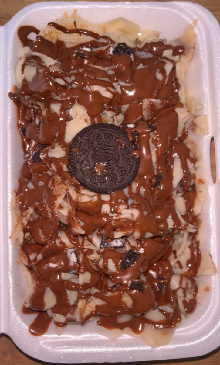 Savourez notre crêpe garnie de morceaux d'Oreo croquants et d'un nappage généreux de chocolat fondant. Parfait pour les amateurs de douceurs sucrées, cette crêpe est le combo ultime de textures et de saveurs. Idéale pour un dessert gourmand ou une pause sucrée entre amis, elle saura satisfaire les becs sucrés et surprendre vos papilles. Offrez-vous un moment de pur plaisir avec cette spécialité unique!