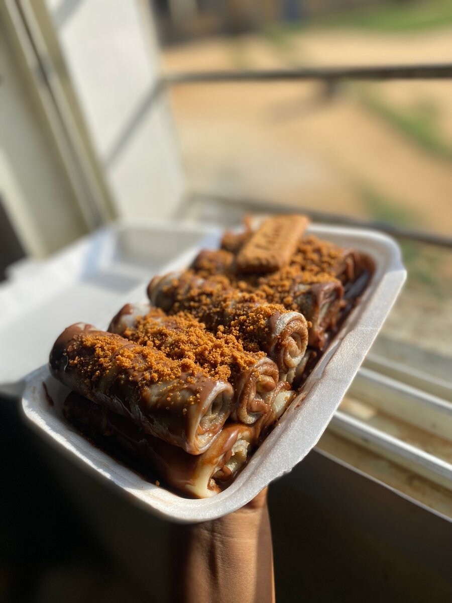Découvrez nos crêpes au chocolat, généreusement fourrées et garnies de biscuit croquant. Parfaites pour un moment sucré, ces délices sont idéaux pour les fêtes, goûters ou simplement pour se faire plaisir. Laissez-vous séduire par leur goût exquis et leur texture fondante. Commandez-les pour une expérience gustative inoubliable!