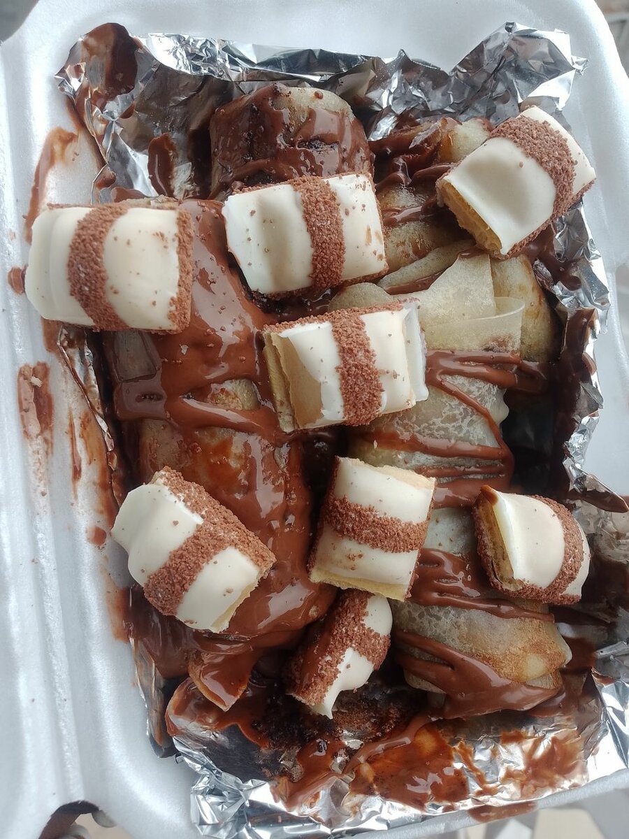 Savourez ces crêpes fourrées au chocolat, enrichies de rondelles sucrées et crémeuses. Parfaites pour un dessert délicieux ou une collation sucrée, elles éveilleront vos papilles avec chaque bouchée fondante. Une vraie tentation pour les amateurs de douceurs chocolatées.