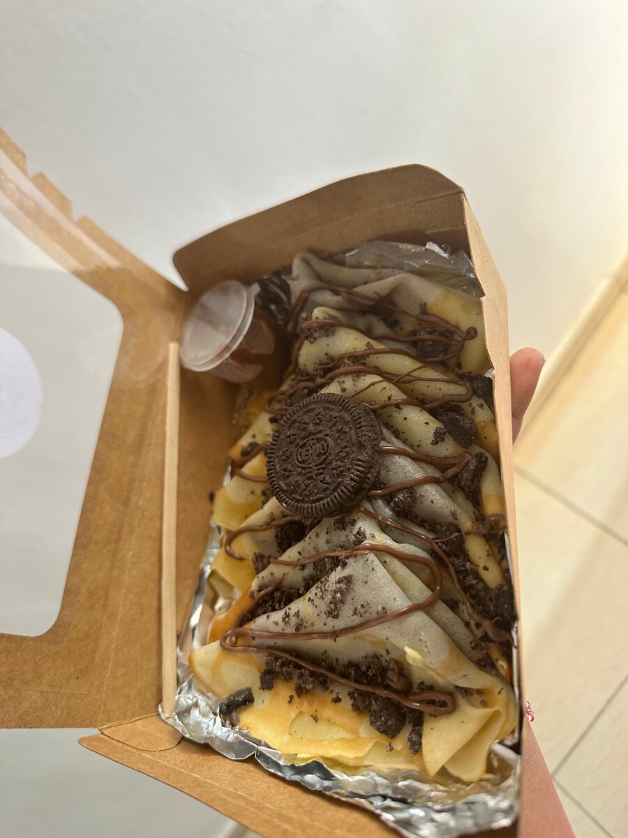 Savourez des crêpes gourmandes délicatement garnies de chocolat et biscuits Oreo. Idéales pour un dessert ou une pause sucrée, ces crêpes raviront les amateurs de douceurs. Parfait pour partager un moment convivial !