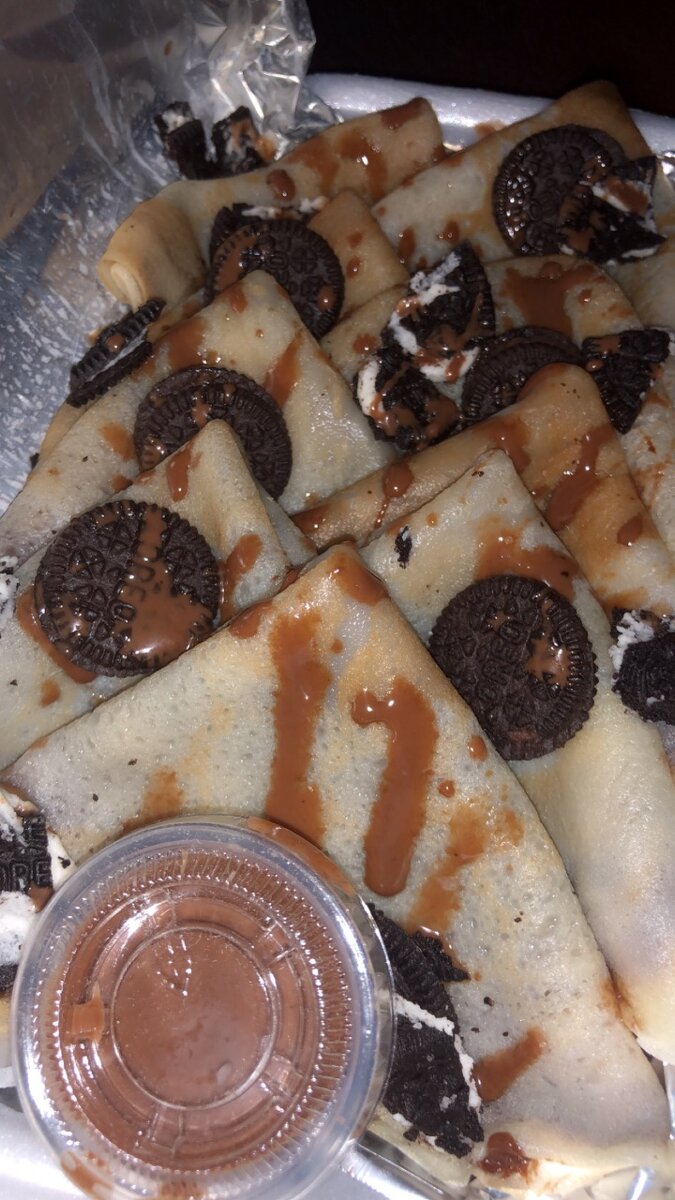 Dégustez un délice gourmand avec nos crêpes moelleuses garnies de biscuits Oreos croustillants et d'une onctueuse sauce chocolat. Parfait pour un dessert unique et savoureux, idéal pour les amateurs de sucreries. Faites-vous plaisir avec cette fusion irrésistible de saveurs!