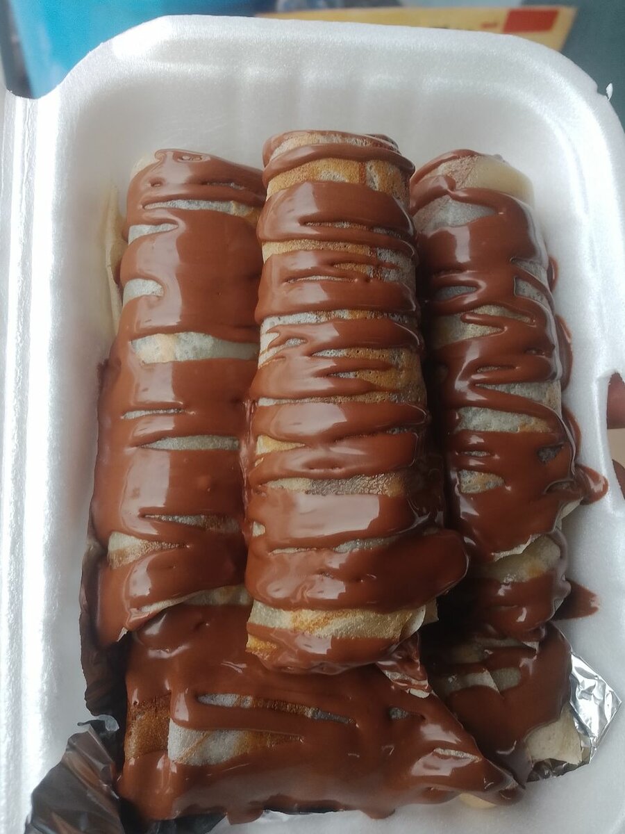 Découvrez nos savoureuses crêpes généreusement nappées de chocolat, parfaites pour un dessert ou une pause gourmande. Idéal pour les amateurs de douceurs chocolatées!